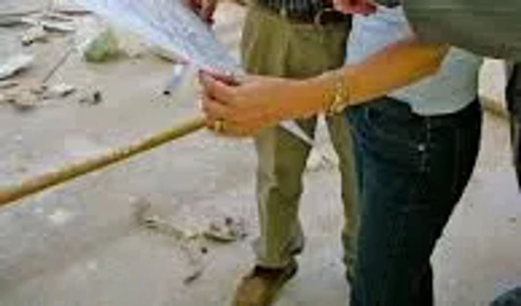 Group of architects working together on Construction site ,looking at the project plan photo